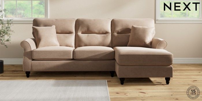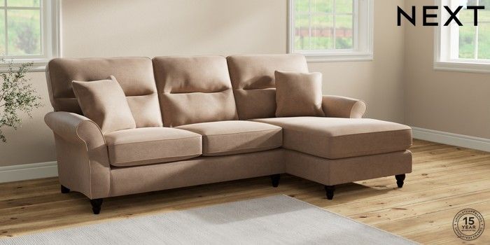 7.2.10 Ashford Highback Medium Sofa Chaise - Right Hand Luxe Chenille Mid Natural Low Turned - Dark | Made Click here to use our website with more accessibility support, for example screen readers