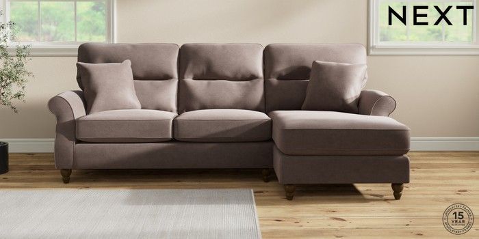 7.2.10 Ashford Highback Medium Sofa Chaise - Right Hand Luxe Chenille Mink Brown Low Turned - Mid | Made Click here to use our website with more accessibility support, for example screen readers