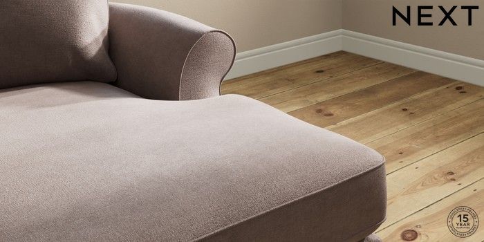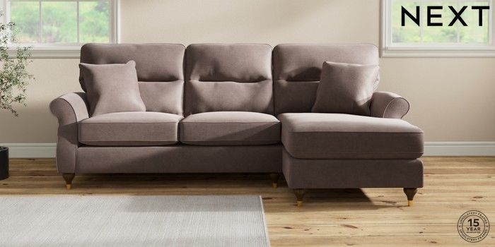 7.2.10 Ashford Highback Medium Sofa Chaise - Right Hand Luxe Chenille Mink Brown Modern Turned Metal Cap - Mid | Made Click here to use our website with more accessibility support, for example screen readers