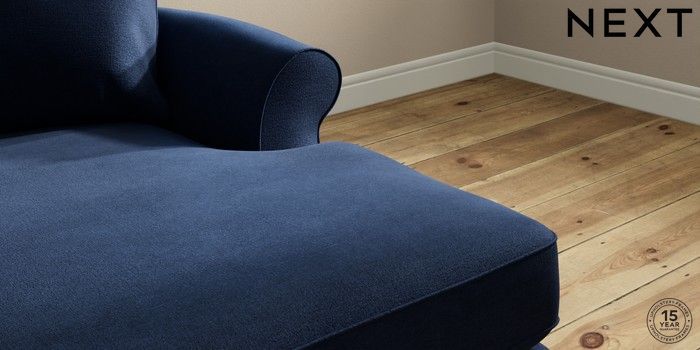 7.2.10 Ashford Highback Medium Sofa Chaise - Right Hand Luxe Chenille Navy Blue Low Turned - Dark | Made Click here to use our website with more accessibility support, for example screen readers