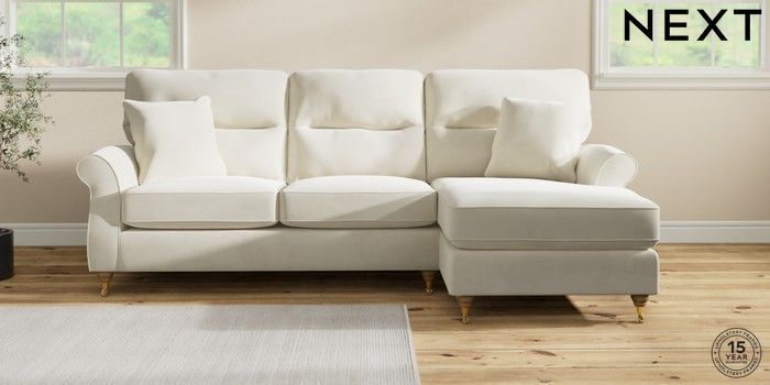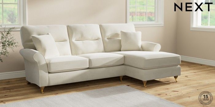 7.2.10 Ashford Highback Medium Sofa Chaise - Right Hand Luxe Chenille Oyster Castor - Light | Made Click here to use our website with more accessibility support, for example screen readers