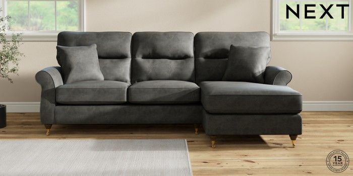 7.2.10 Ashford Highback Medium Sofa Chaise - Right Hand Monza Faux Leather Easy Clean Dark Grey Castor - Mid | Made Click here to use our website with more accessibility support, for example screen readers