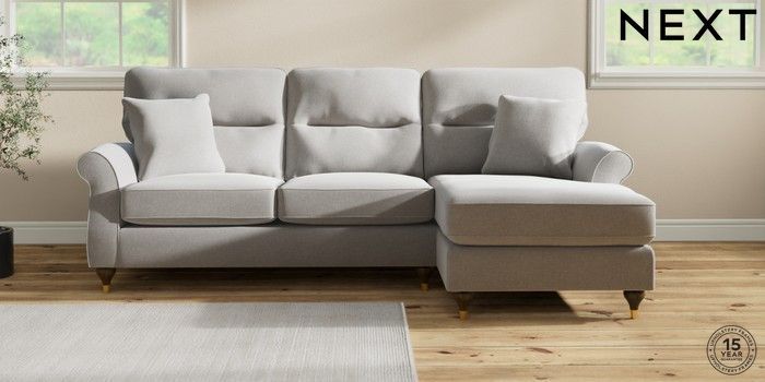 7.2.10 Ashford Highback Medium Sofa Chaise - Right Hand Natural Mix Light Grey Modern Turned Metal Cap - Mid | Made Click here to use our website with more accessibility support, for example screen readers