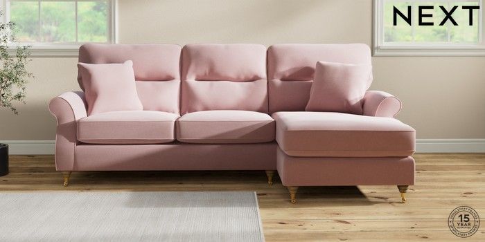 7.2.10 Ashford Highback Medium Sofa Chaise - Right Hand Natural Mix Light Rose Pink Castor - Light | Made Click here to use our website with more accessibility support, for example screen readers