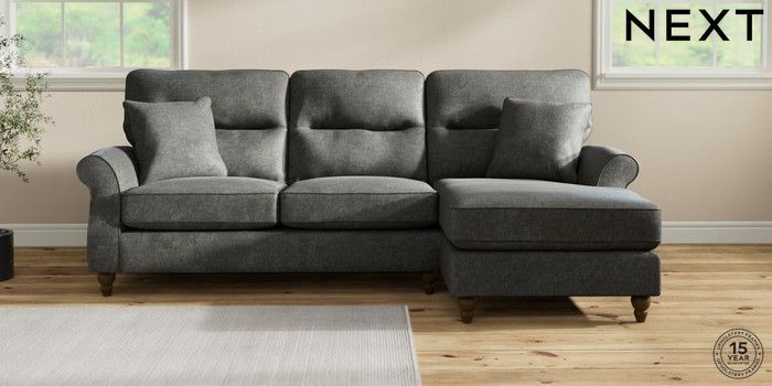 7.2.10 Ashford Highback Medium Sofa Chaise - Right Hand Plush Chenille Dark Grey Low Turned - Mid | Made Click here to use our website with more accessibility support, for example screen readers