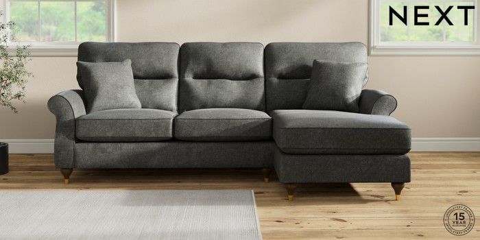 7.2.10 Ashford Highback Medium Sofa Chaise - Right Hand Plush Chenille Dark Grey Modern Turned Metal Cap - Mid | Made Click here to use our website with more accessibility support, for example screen readers
