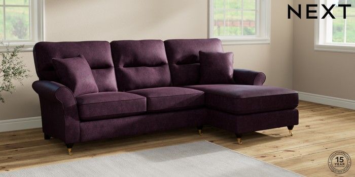 7.2.10 Ashford Highback Medium Sofa Chaise - Right Hand Plush Chenille Dark Plum Purple Castor - Dark | Made Click here to use our website with more accessibility support, for example screen readers