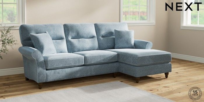 7.2.10 Ashford Highback Medium Sofa Chaise - Right Hand Plush Chenille Light Blue Low Turned - Mid | Made Click here to use our website with more accessibility support, for example screen readers