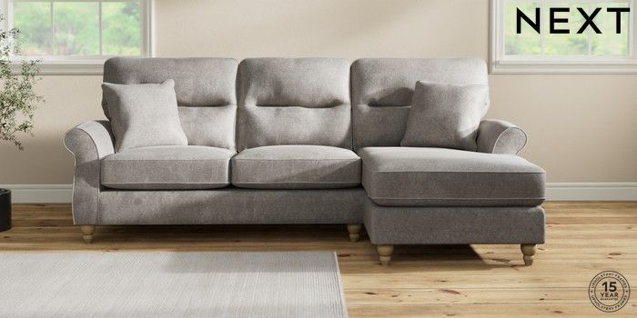 7.2.10 Ashford Highback Medium Sofa Chaise - Right Hand Plush Chenille Light Grey Low Turned - Light | Made Click here to use our website with more accessibility support, for example screen readers