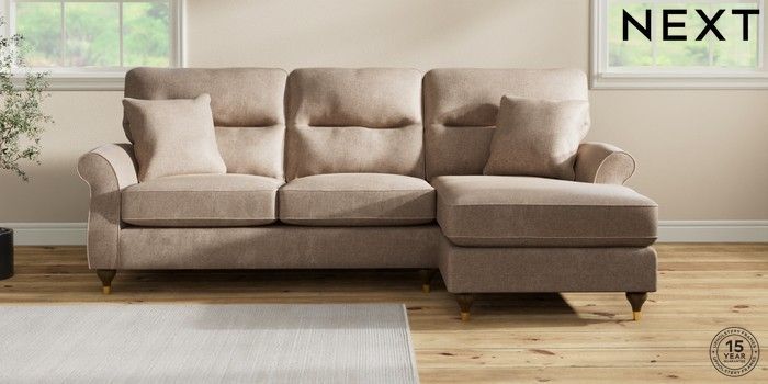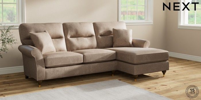 7.2.10 Ashford Highback Medium Sofa Chaise - Right Hand Plush Chenille Mid Natural Modern Turned Metal Cap - Mid | Made Click here to use our website with more accessibility support, for example screen readers