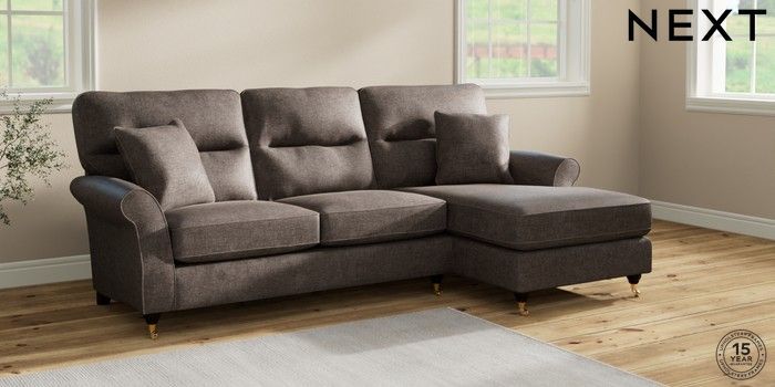 7.2.10 Ashford Highback Medium Sofa Chaise - Right Hand Plush Chenille Mink Brown Castor - Dark | Made Click here to use our website with more accessibility support, for example screen readers