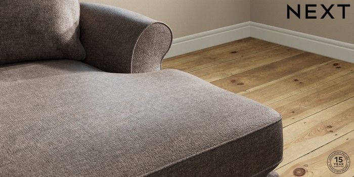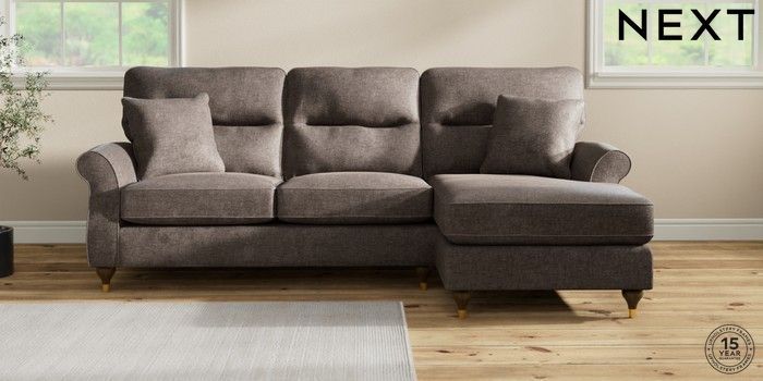 7.2.10 Ashford Highback Medium Sofa Chaise - Right Hand Plush Chenille Mink Brown Modern Turned Metal Cap - Mid | Made Click here to use our website with more accessibility support, for example screen readers