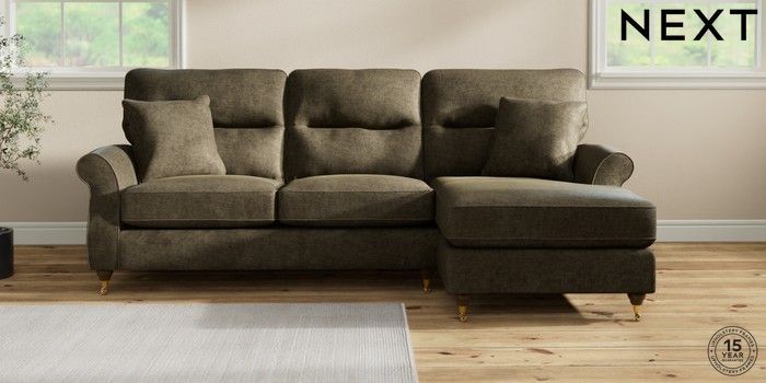 7.2.10 Ashford Highback Medium Sofa Chaise - Right Hand Plush Chenille Moss Green Castor - Mid | Made Click here to use our website with more accessibility support, for example screen readers