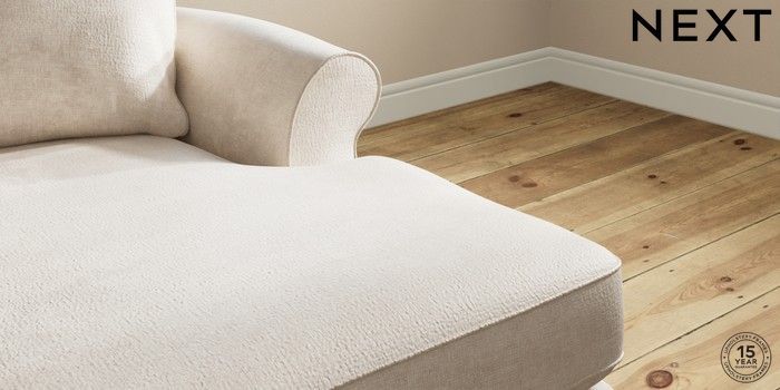 7.2.10 Ashford Highback Medium Sofa Chaise - Right Hand Plush Chenille Oyster Castor - Light | Made Click here to use our website with more accessibility support, for example screen readers
