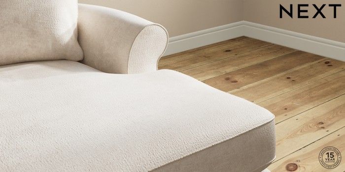 7.2.10 Ashford Highback Medium Sofa Chaise - Right Hand Plush Chenille Oyster Low Turned - Mid | Made Click here to use our website with more accessibility support, for example screen readers
