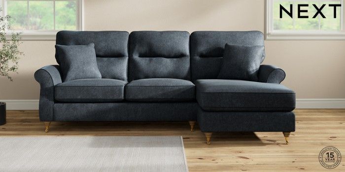 7.2.10 Ashford Highback Medium Sofa Chaise - Right Hand Plush Chenille Slate Blue Castor - Light | Made Click here to use our website with more accessibility support, for example screen readers