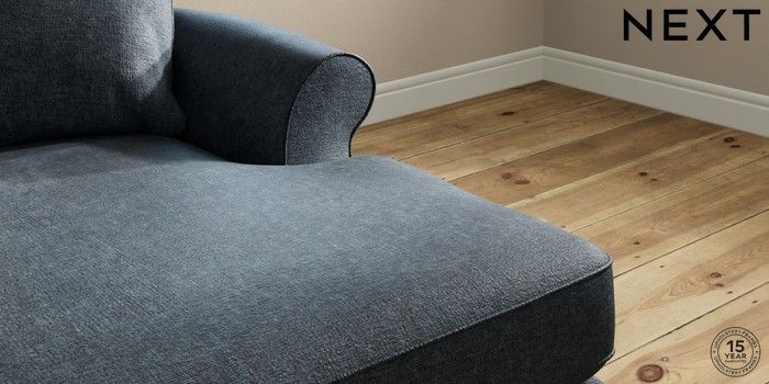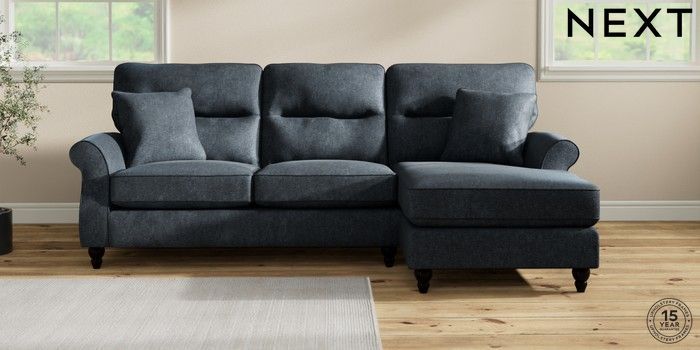 7.2.10 Ashford Highback Medium Sofa Chaise - Right Hand Plush Chenille Slate Blue Low Turned - Dark | Made Click here to use our website with more accessibility support, for example screen readers