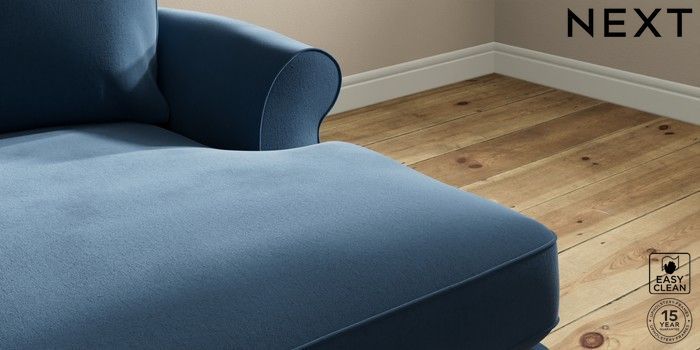 7.2.10 Ashford Highback Medium Sofa Chaise - Right Hand Plush Velvet Easy Clean Airforce Blue Low Turned - Mid | Made Click here to use our website with more accessibility support, for example screen readers