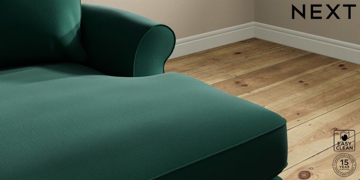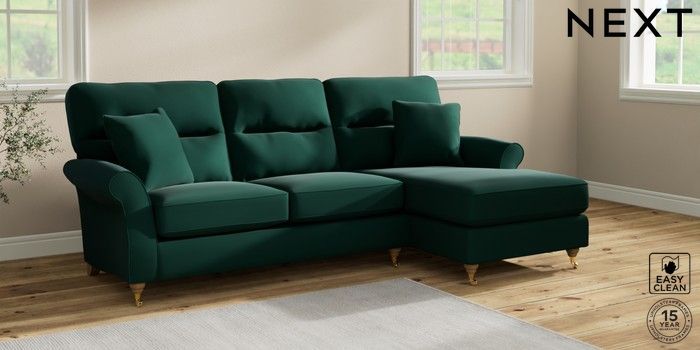 7.2.10 Ashford Highback Medium Sofa Chaise - Right Hand Plush Velvet Easy Clean Bottle Green Castor - Light | Made Click here to use our website with more accessibility support, for example screen readers