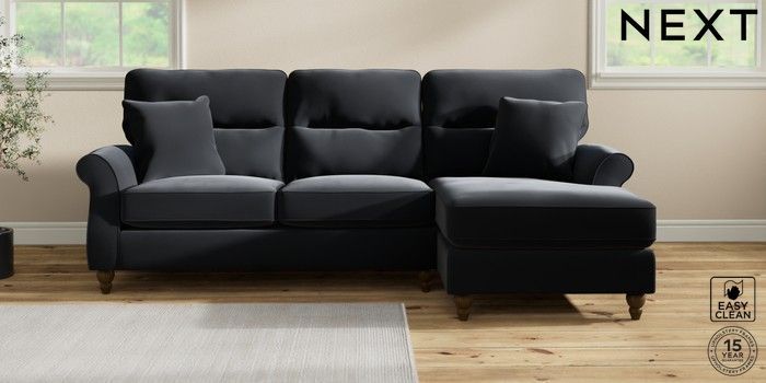 7.2.10 Ashford Highback Medium Sofa Chaise - Right Hand Plush Velvet Easy Clean Charcoal Grey Low Turned - Mid | Made Click here to use our website with more accessibility support, for example screen readers