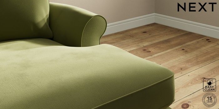 7.2.10 Ashford Highback Medium Sofa Chaise - Right Hand Plush Velvet Easy Clean Mid Olive Green Low Turned - Light | Made Click here to use our website with more accessibility support, for example screen readers