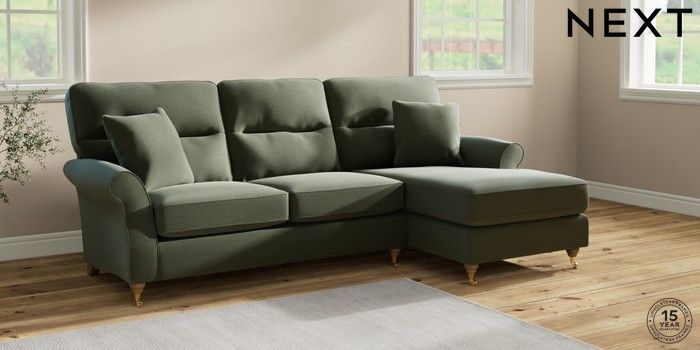 7.2.10 Ashford Highback Medium Sofa Chaise - Right Hand Relaxed Linen Look Dark Green Castor - Light | Made Click here to use our website with more accessibility support, for example screen readers