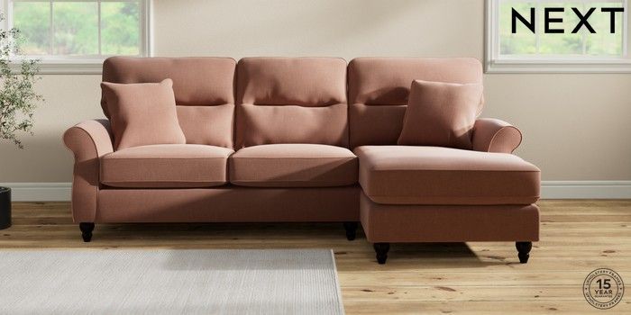 7.2.10 Ashford Highback Medium Sofa Chaise - Right Hand Relaxed Linen Look Light Rust Brown Low Turned - Dark | Made Click here to use our website with more accessibility support, for example screen readers