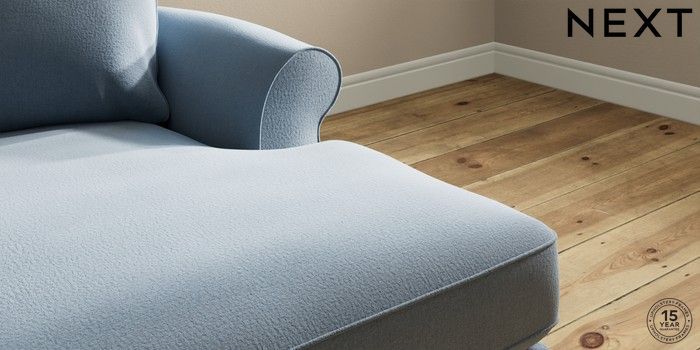 7.2.10 Ashford Highback Medium Sofa Chaise - Right Hand Relaxed Linen Look Mid Blue Castor - Light | Made Click here to use our website with more accessibility support, for example screen readers