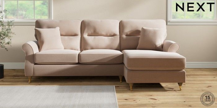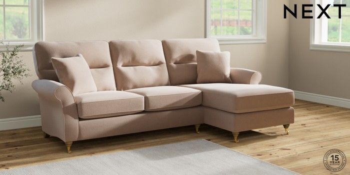 7.2.10 Ashford Highback Medium Sofa Chaise - Right Hand Relaxed Linen Look Mid Natural Castor - Light | Made Click here to use our website with more accessibility support, for example screen readers