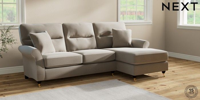 7.2.10 Ashford Highback Medium Sofa Chaise - Right Hand Ripple Chenille Light Natural Castor - Dark | Made Click here to use our website with more accessibility support, for example screen readers