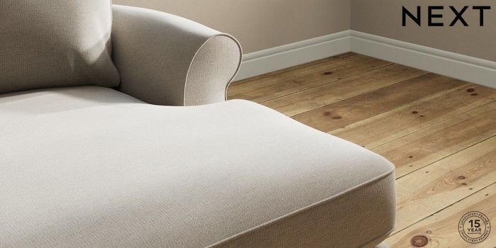 7.2.10 Ashford Highback Medium Sofa Chaise - Right Hand Ripple Chenille Light Natural Castor - Light | Made Click here to use our website with more accessibility support, for example screen readers