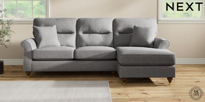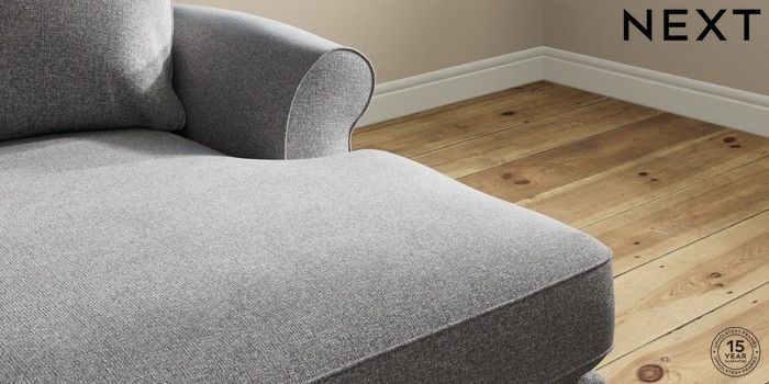 7.2.10 Ashford Highback Medium Sofa Chaise - Right Hand Studio Chenille Mid Grey Modern Turned Metal Cap - Mid | Made Click here to use our website with more accessibility support, for example screen readers