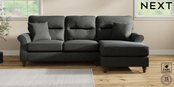 7.2.10 Ashford Highback Medium Sofa Chaise - Right Hand Tweedy Blend Easy Clean Charcoal Grey Low Turned - Mid | Made Click here to use our website with more accessibility support, for example screen readers