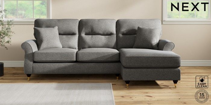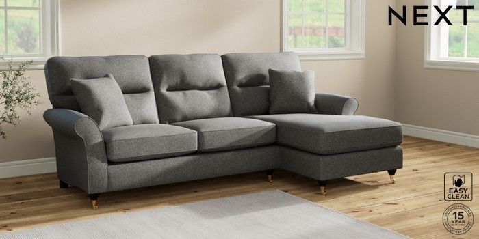 7.2.10 Ashford Highback Medium Sofa Chaise - Right Hand Tweedy Blend Easy Clean Dark Grey Castor - Dark | Made Click here to use our website with more accessibility support, for example screen readers