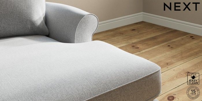 7.2.10 Ashford Highback Medium Sofa Chaise - Right Hand Tweedy Blend Easy Clean Light Silver Grey Castor - Light | Made Click here to use our website with more accessibility support, for example screen readers