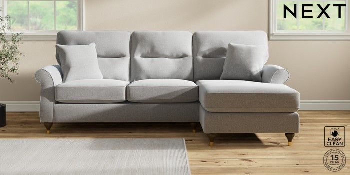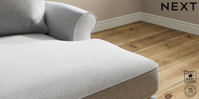 7.2.10 Ashford Highback Medium Sofa Chaise - Right Hand Tweedy Blend Easy Clean Light Silver Grey Modern Turned Metal Cap - Mid | Made Click here to use our website with more accessibility support, for example screen readers