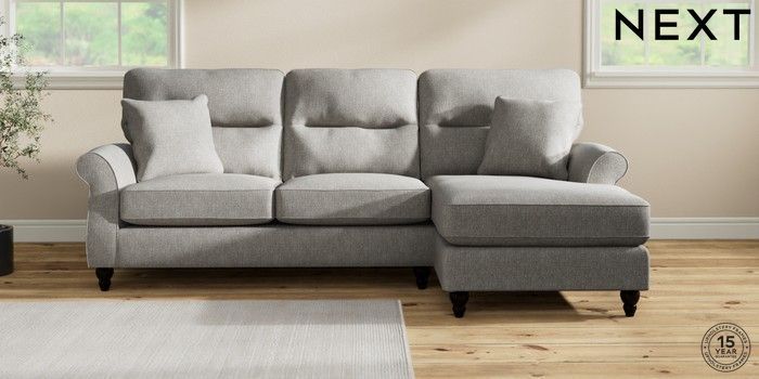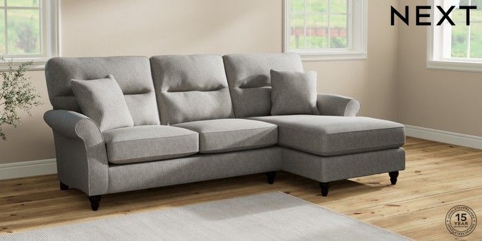7.2.10 Ashford Highback Medium Sofa Chaise - Right Hand Tweedy Chenille Mid Grey Low Turned - Dark | Made Click here to use our website with more accessibility support, for example screen readers