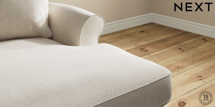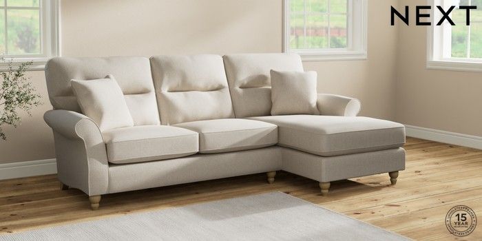 7.2.10 Ashford Highback Medium Sofa Chaise - Right Hand Tweedy Chenille Oyster Low Turned - Light | Made Click here to use our website with more accessibility support, for example screen readers