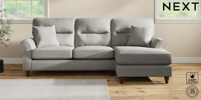 7.2.10 Ashford Highback Medium Sofa Chaise - Right Hand Woven Chenille Easy Clean Light Grey Low Turned - Mid | Made Click here to use our website with more accessibility support, for example screen readers