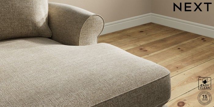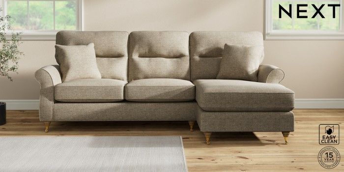7.2.10 Ashford Highback Medium Sofa Chaise - Right Hand Woven Chenille Easy Clean Mid Natural Castor - Light | Made Click here to use our website with more accessibility support, for example screen readers