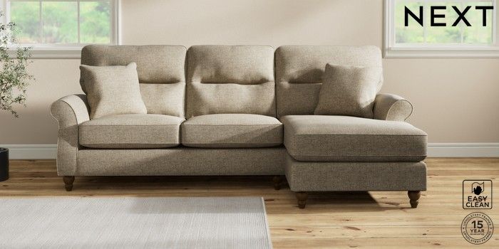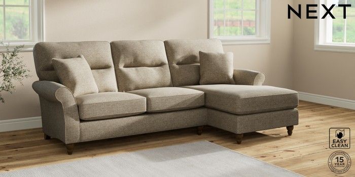 7.2.10 Ashford Highback Medium Sofa Chaise - Right Hand Woven Chenille Easy Clean Mid Natural Low Turned - Mid | Made Click here to use our website with more accessibility support, for example screen readers