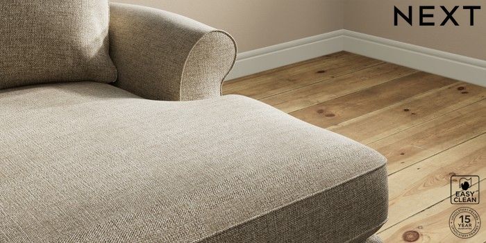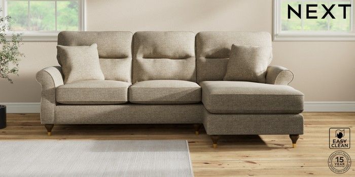 7.2.10 Ashford Highback Medium Sofa Chaise - Right Hand Woven Chenille Easy Clean Mid Natural Modern Turned Metal Cap - Mid | Made Click here to use our website with more accessibility support, for example screen readers