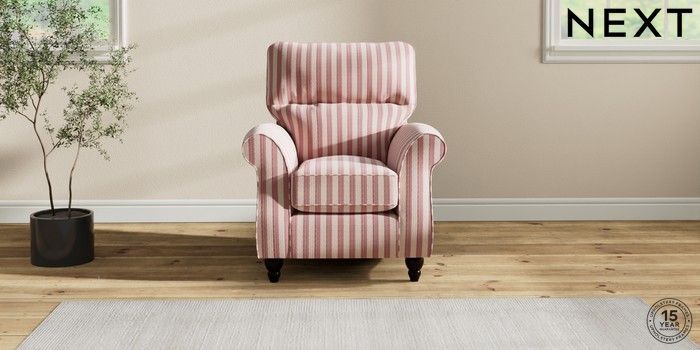 7.2.10 Ashford Highback Small Armchair Bold Chenille Stripe Dark Pink Low Turned - Dark | Made Click here to use our website with more accessibility support, for example screen readers