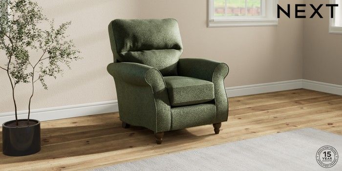 7.2.10 Ashford Highback Small Armchair Boucle Chenille Dark Moss Green Low Turned - Mid | Made Click here to use our website with more accessibility support, for example screen readers