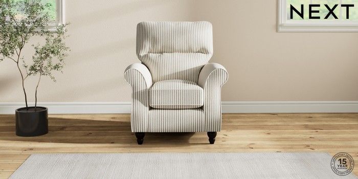 7.2.10 Ashford Highback Small Armchair Chenille Stripe Moss Green Low Turned - Dark | Made Click here to use our website with more accessibility support, for example screen readers