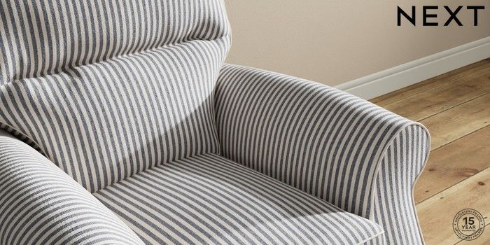 7.2.10 Ashford Highback Small Armchair Chenille Stripe Slate Blue Castor - Mid | Made Click here to use our website with more accessibility support, for example screen readers
