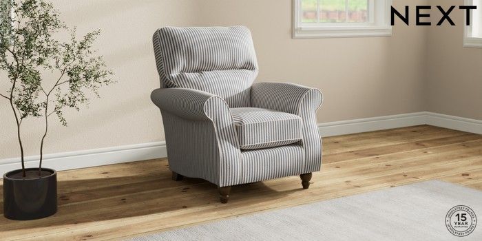 7.2.10 Ashford Highback Small Armchair Chenille Stripe Slate Blue Low Turned - Mid | Made Click here to use our website with more accessibility support, for example screen readers