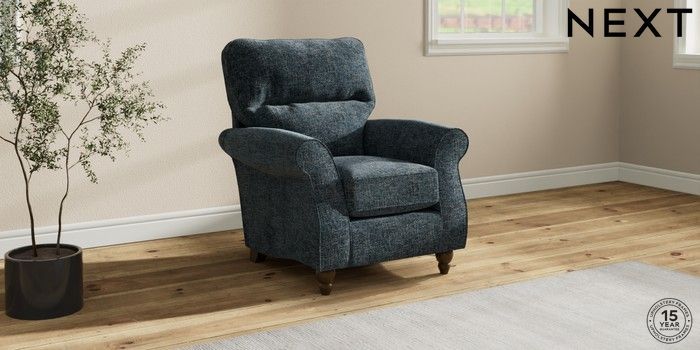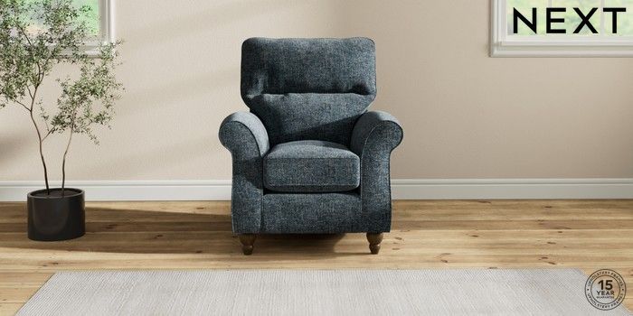 7.2.10 Ashford Highback Small Armchair Chunky Chenille Dark Navy Blue Low Turned - Mid | Made Click here to use our website with more accessibility support, for example screen readers