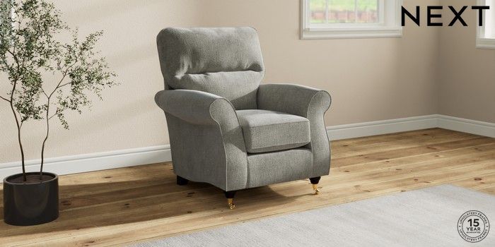 7.2.10 Ashford Highback Small Armchair Chunky Chenille Light Grey Castor - Dark | Made Click here to use our website with more accessibility support, for example screen readers