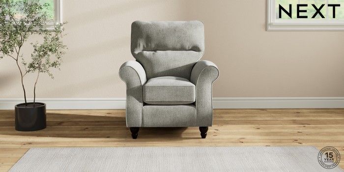 7.2.10 Ashford Highback Small Armchair Chunky Chenille Light Grey Low Turned - Dark | Made Click here to use our website with more accessibility support, for example screen readers